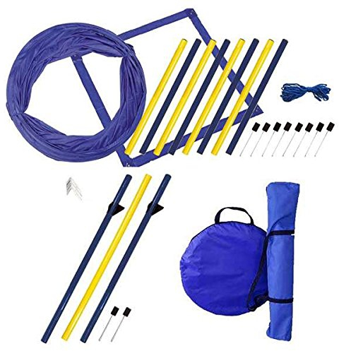 Verbessern Sie die Beweglichkeit Ihres Hundes Unser Agility-Trainingsset für Hunde enthält einen Tunnel, eine Agility-Hürde, einen Sprungring, 8 Slalomstangen und eine quadratische Bremsbox zum Üben und für Spaß. Das strapazierfähige Material und die verstellbaren Gerätehöhen ermöglichen es Hunden jeden Alters und jeder Größe, ihre Beweglichkeitsfähigkeiten zu verbessern.