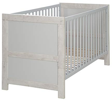 roba Babybett Malo 70 x 140 cm - Mitwachsendes Gitterbett - Höhenverstellbar - Umbaubar zum Juniorbett - Holz weiß lackiert/Dekor Sonoma Eiche