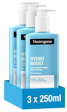Neutrogena Hydro Boost Bodylotion Gel, ultra-leichte Formel für geschmeidige Haut, feuchtigkeitsspendende Körperlotion mit 17Prozent Glycerin + Hyaluronsäure, Körpercreme-Gel für alle Hauttypen 250 ml