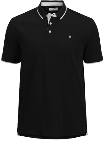 Jack & Jones Herren Slim Fit Polo Shirt JJEPAULOS Uni Sommer Hemd Kragen Kurz Arm Basic Pique Cotton, Dark Grey Melange/Detail:tonal/Black/Slim , M