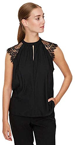 ONLY Damen ONLVICTORIA SL LACE Mix Singlet NOOS WVN T-Shirt & Tops, Black, XS