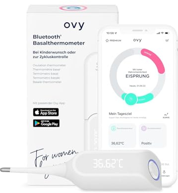 Ovy® Basalthermometer mit EU-zertifizierter Ovy App zur hormonfreien Verhütung und bei Kinderwunsch | Eisprung-Messgerät zur Berechnung fruchtbarer Tage